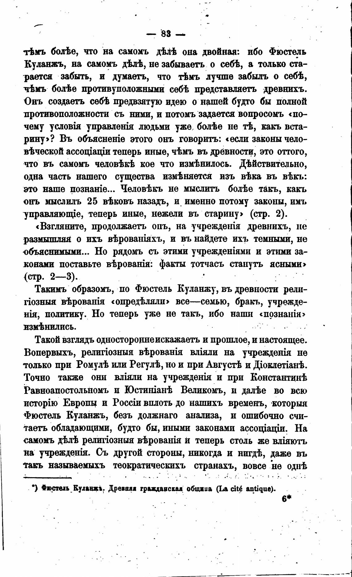 Фюстель Куланжъ, безъ должнаго анај:иза, и ошибочно счи-