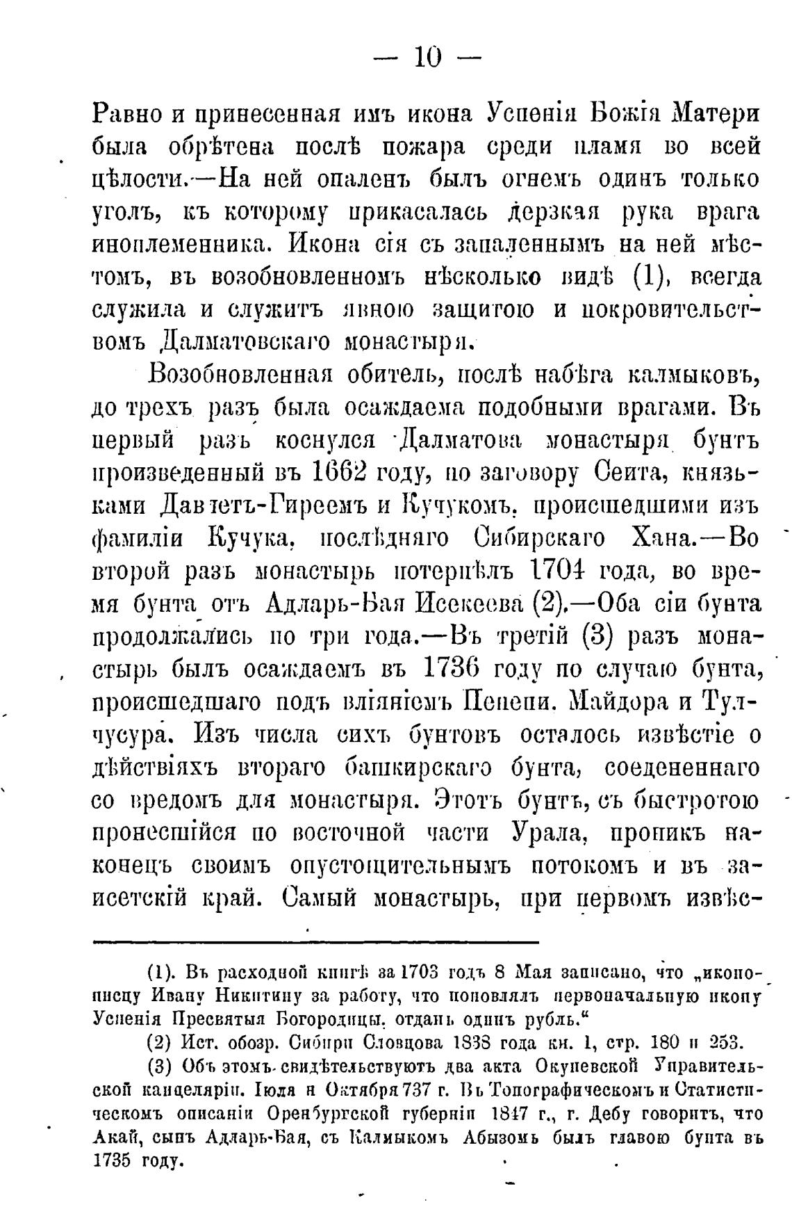 первый разъ коснулся • Далматова монастыря бун'гъ