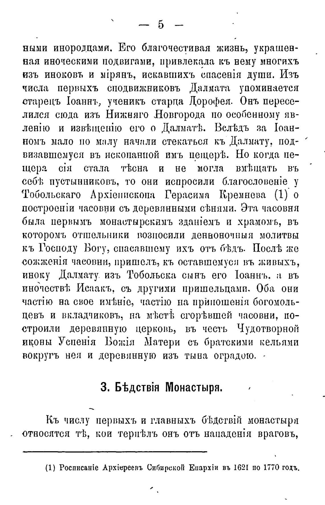 (1) PocnHcaHie ApxiepeeBb Сибирской EuapxiIt въ 1621 по 1770 годъ.