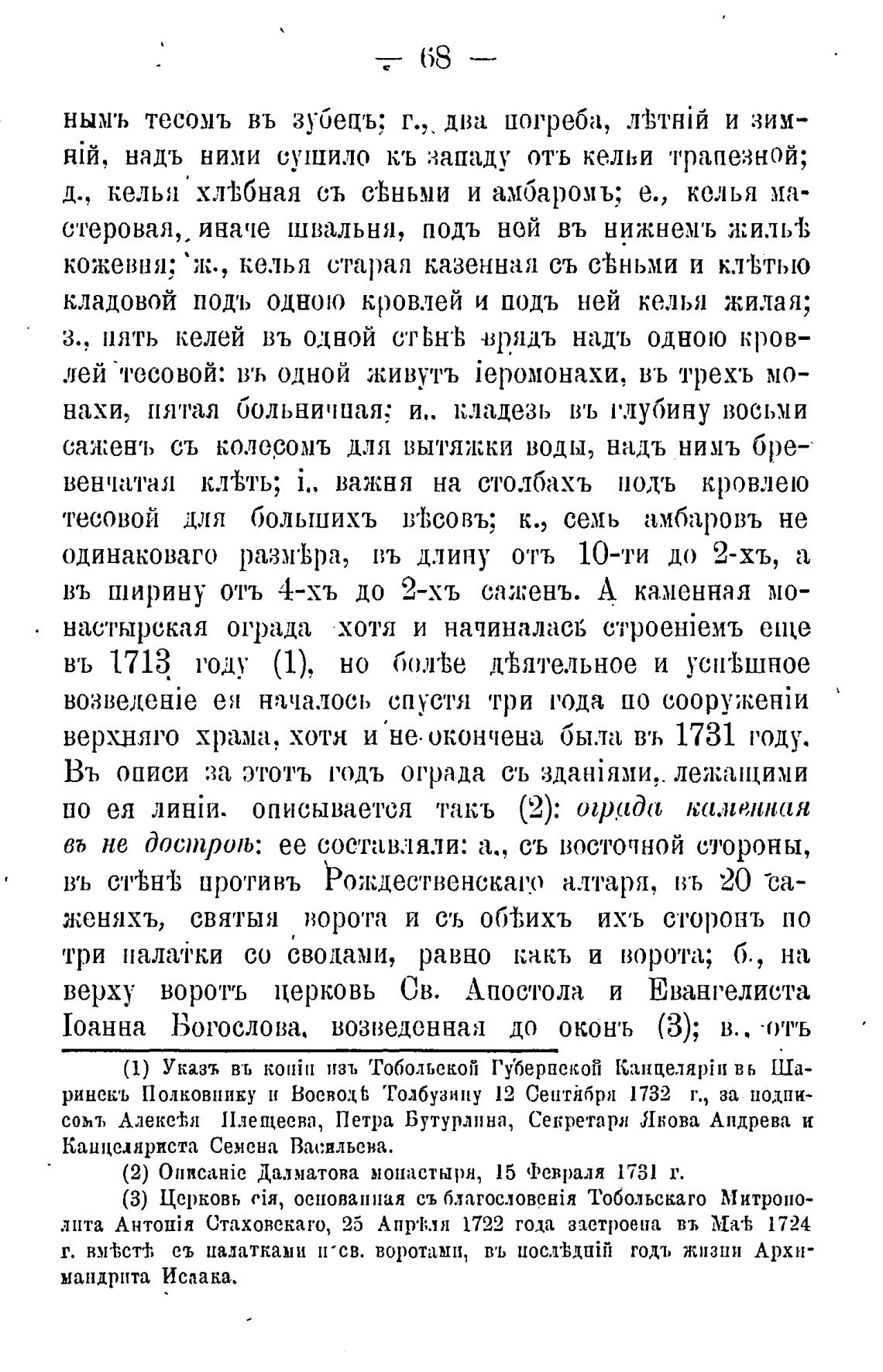 (2) Далматова монастыря, 15 Февраля 1731 т.
