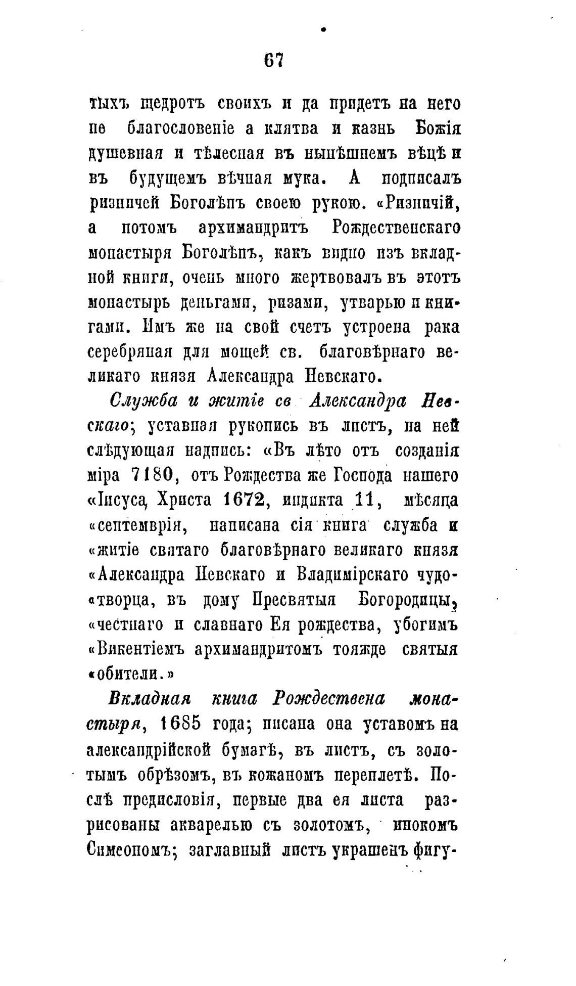 стыря, 1685 года; писана она уставомъ на
