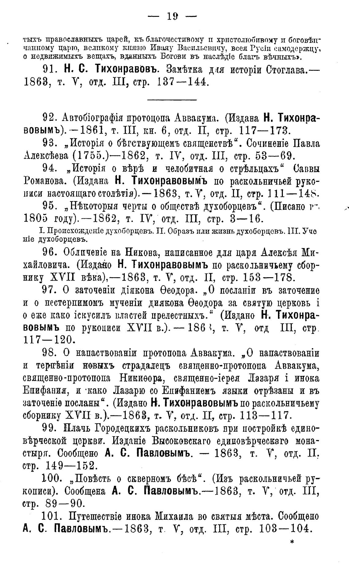 заточент посланы“. (Издано Н. Тихонравовымъ по раскольничьему