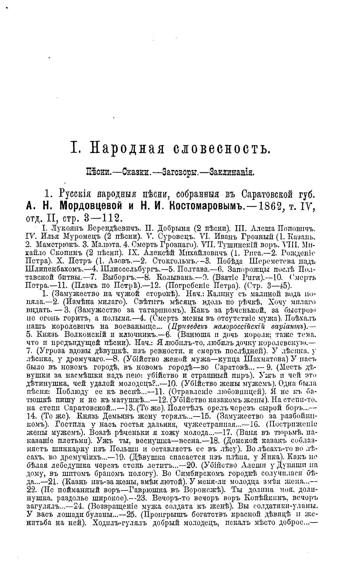 1. народныя пђсни, собранныя въ Саратовской губ.