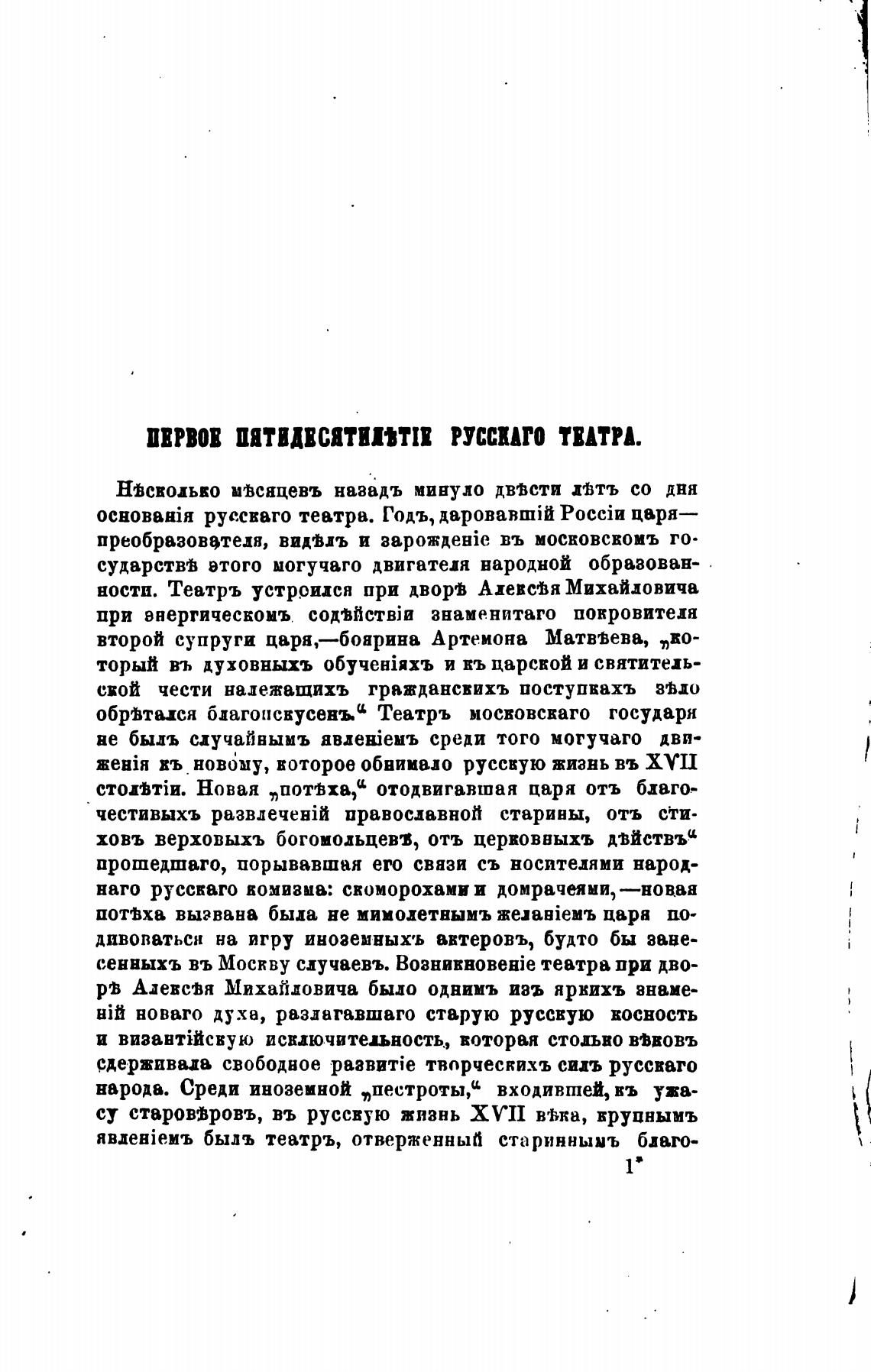 ности. Театръ устрридся при дворгВ Адевсјя Михайловича