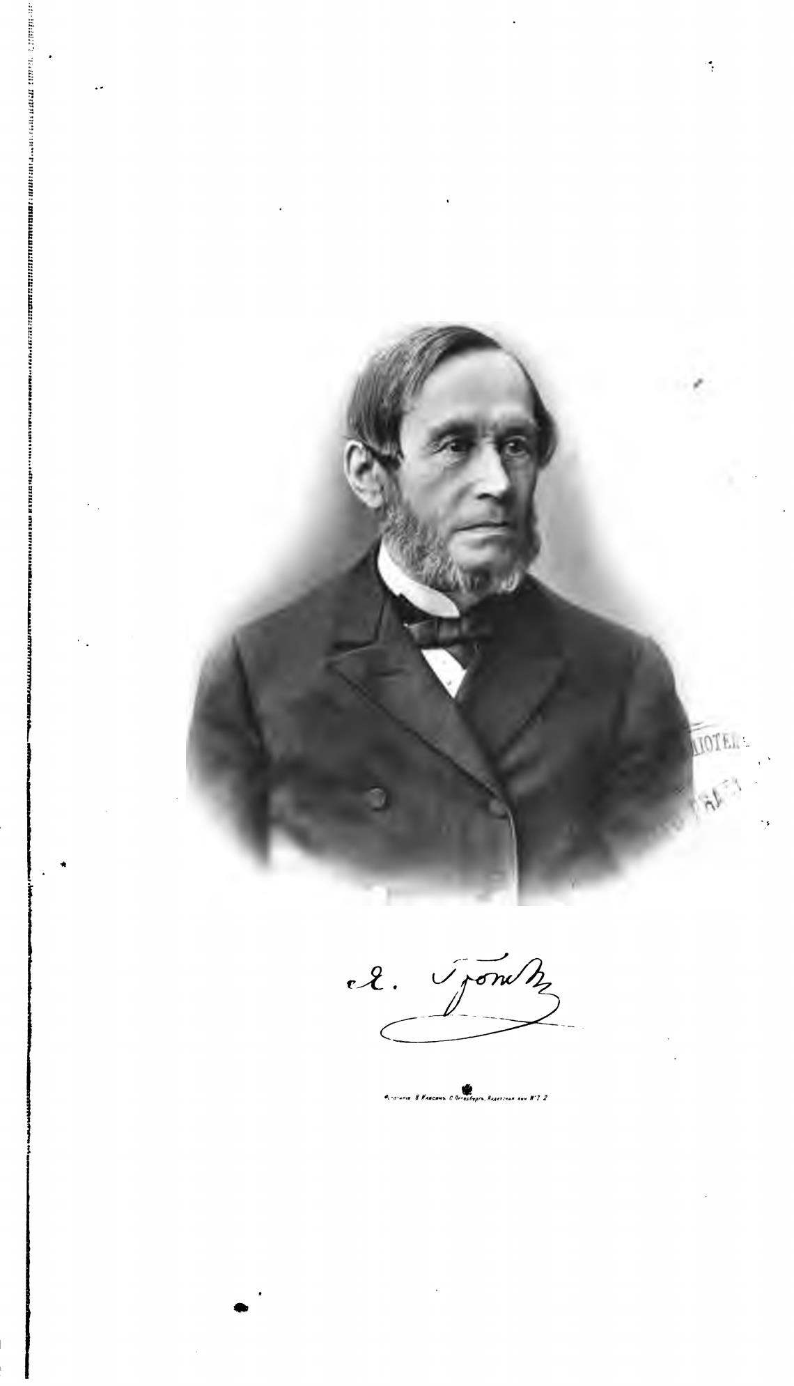 Я. К. Грот. Несколько данных к его биографии и характеристике. С приложением некоторых документов, относящихся к юбилеям Якова Карловича в 1882 и 1892 гг. и библиографического списка его сочинений, переводов и изданий. - Типография Императорской Академии Наук
