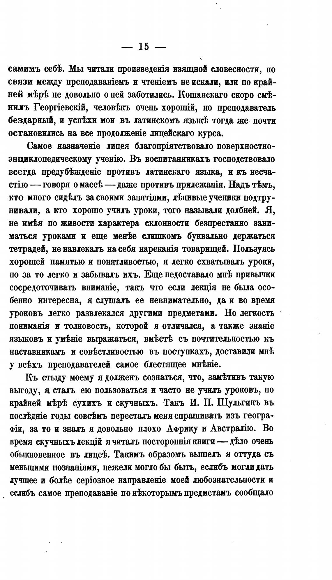 бездарный, и успеЬхи мои въ латинскомъ язык% тогда же почти