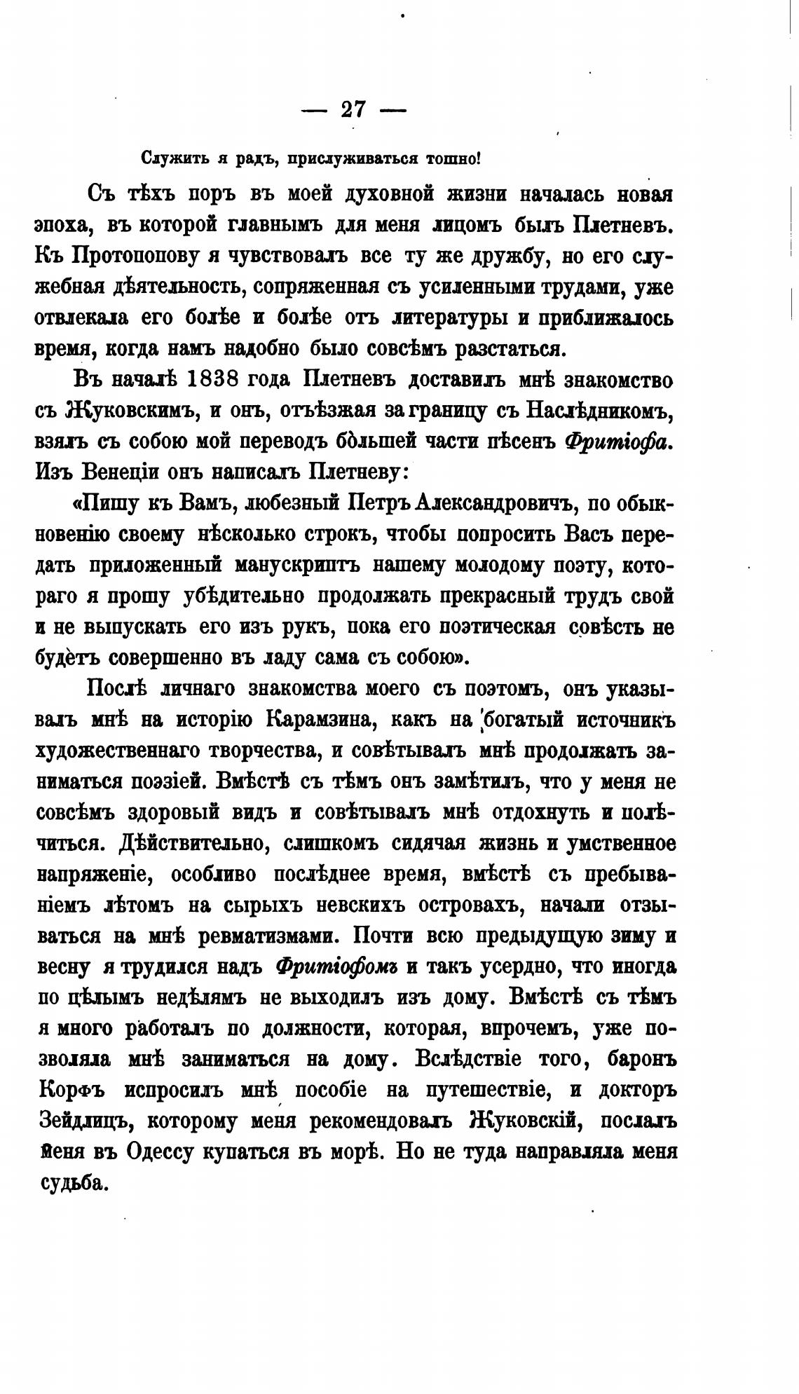 Въ начахВ 1838 года Плетневъ доставишь мнгЬ знакомство