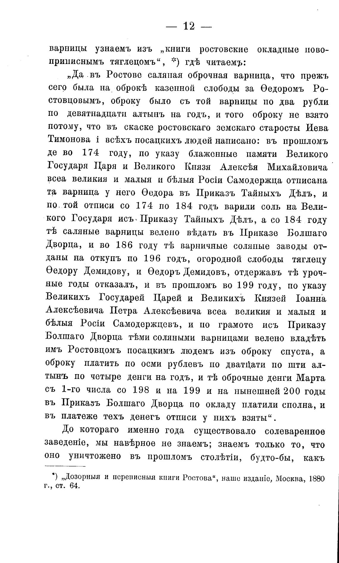 * ) „Дозорныя и переписныя книги Ростова“, наше изданй), Москва, 1880