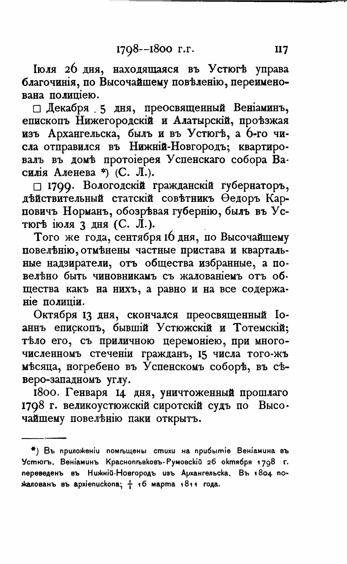 Устюгъ. BeHiaMuHb КраснопљвКовъ- РумовсКШ 26 оКтя6ря 1798 г.