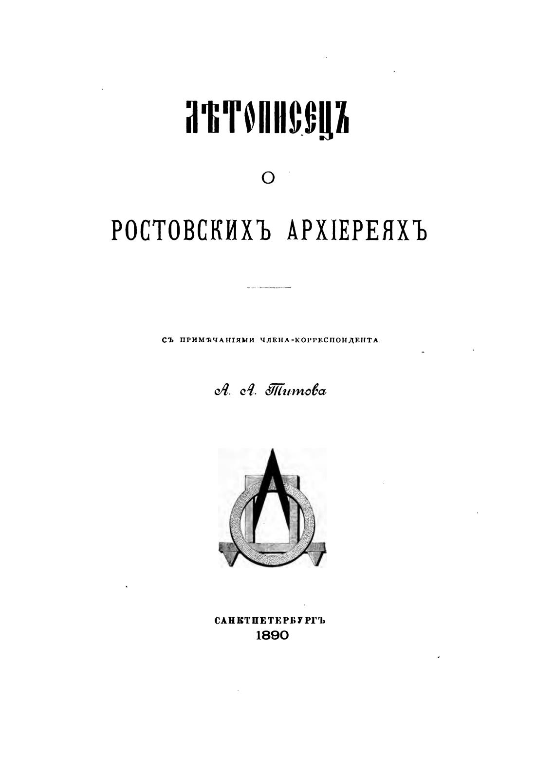 Летописец о Ростовских архиереях. - Титов А. А.