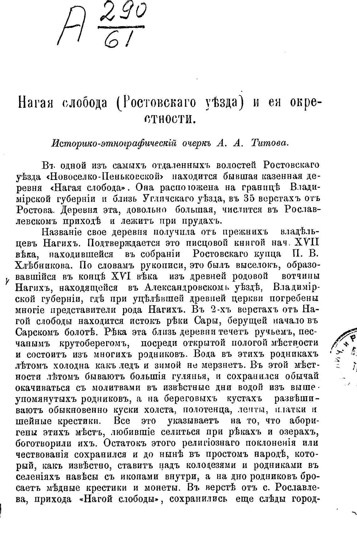 Нагая слобода (Росговскаго угьзда) и ен окре-