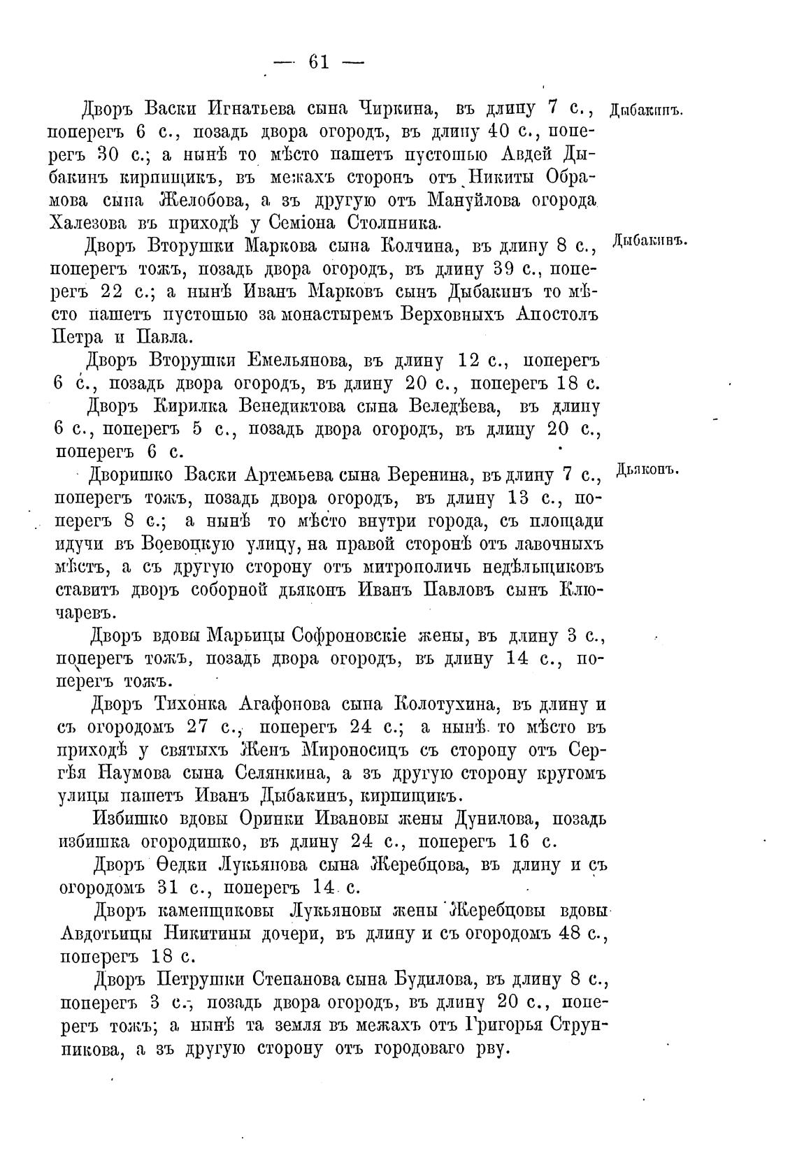 Дворъ Вторушки Маркова сына Колчина, въ длину 8 с., Дыбакивъ•