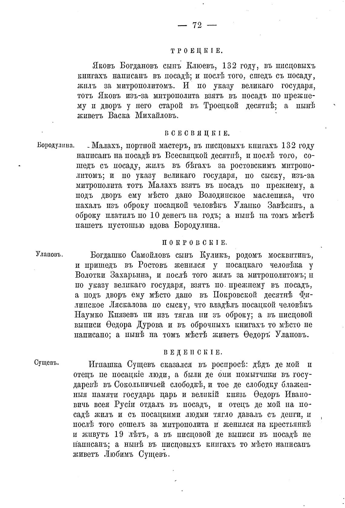Бородулина. - Малахъ, портной мастеръ, въ писцовыхъ книгахъ 132 году