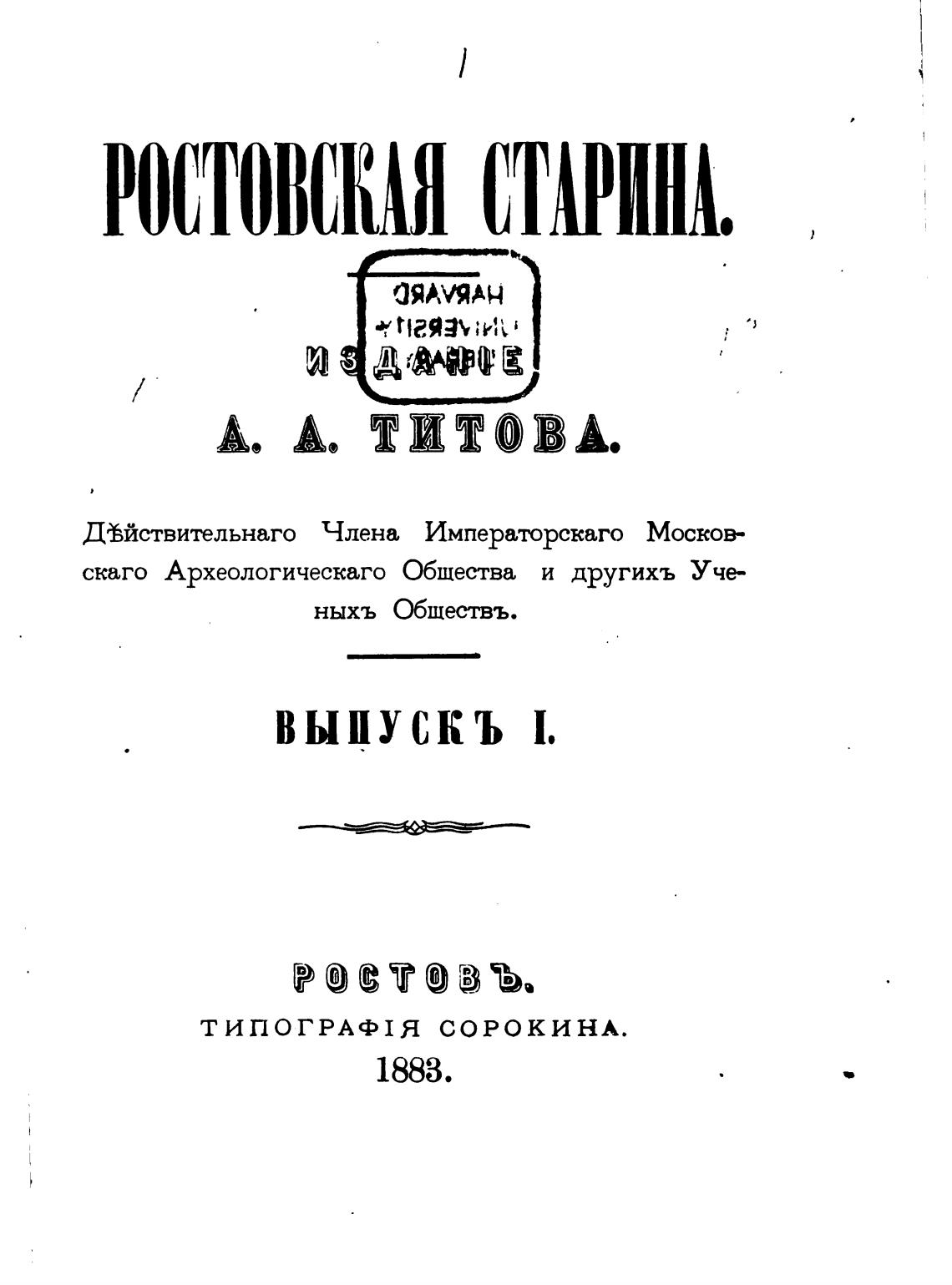РОСТОВСКАЯ СТАРИНА,