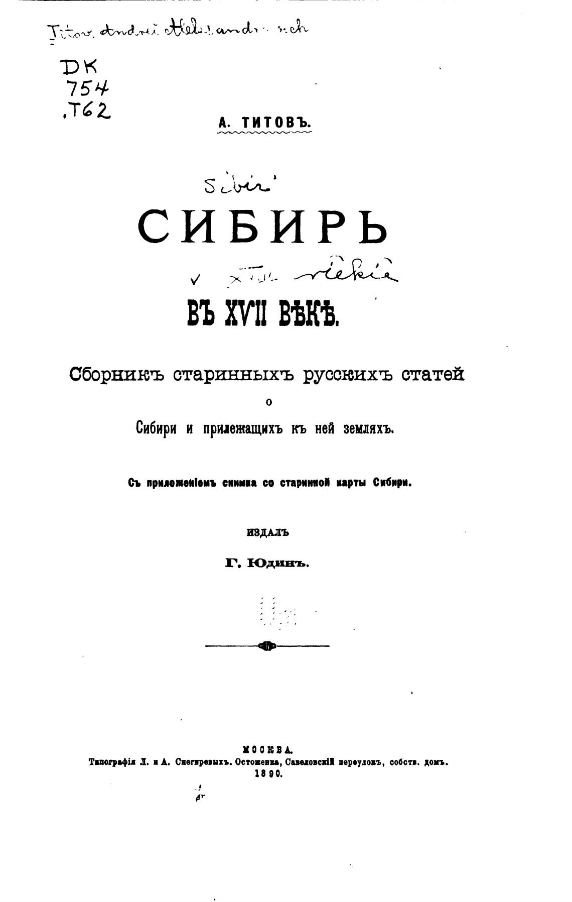 Сибири и прилежащихъ кь ней земляхъ.