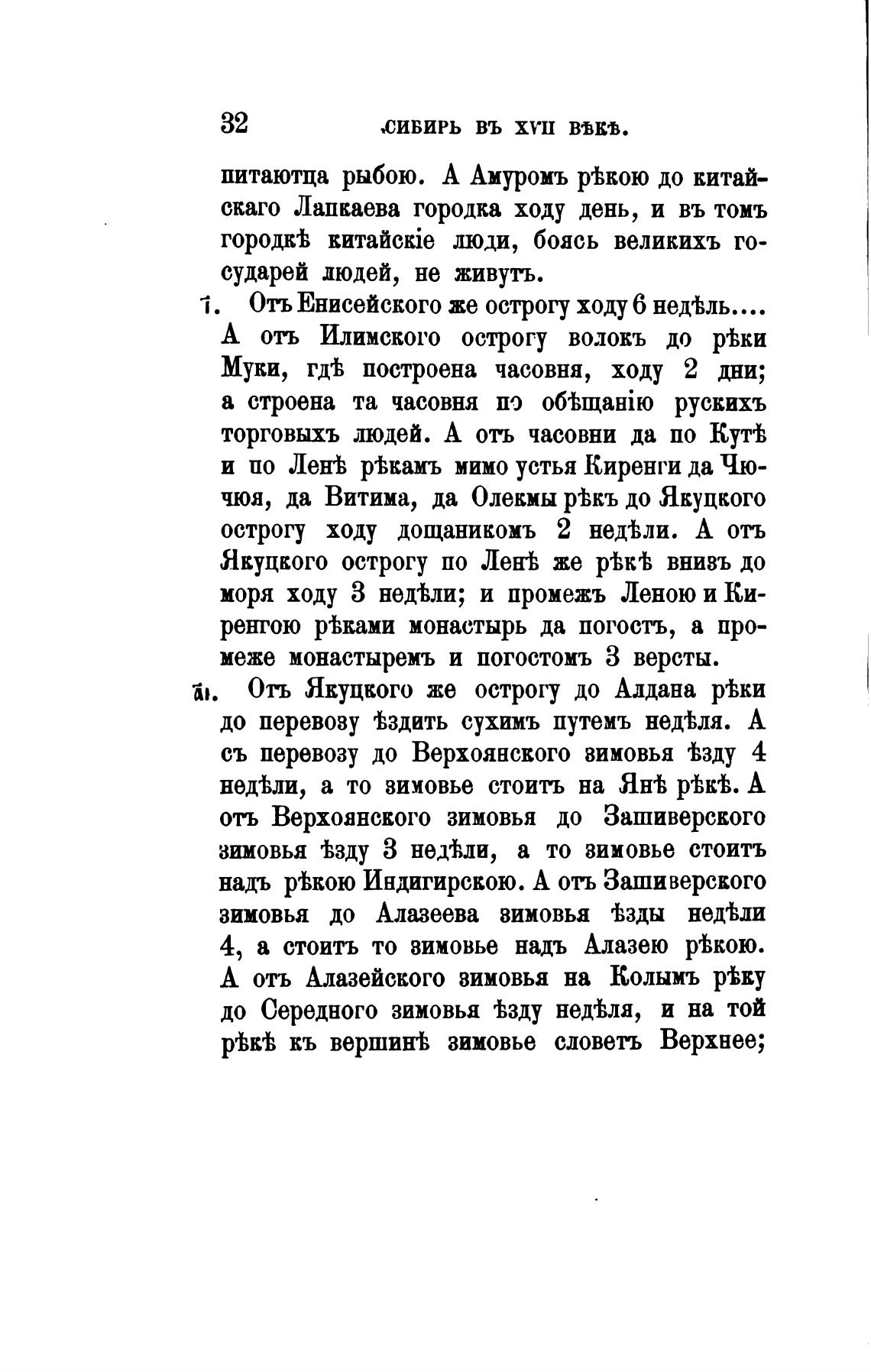 1. Отъ Енисейского же острогу ходу 6 нед'Ьль