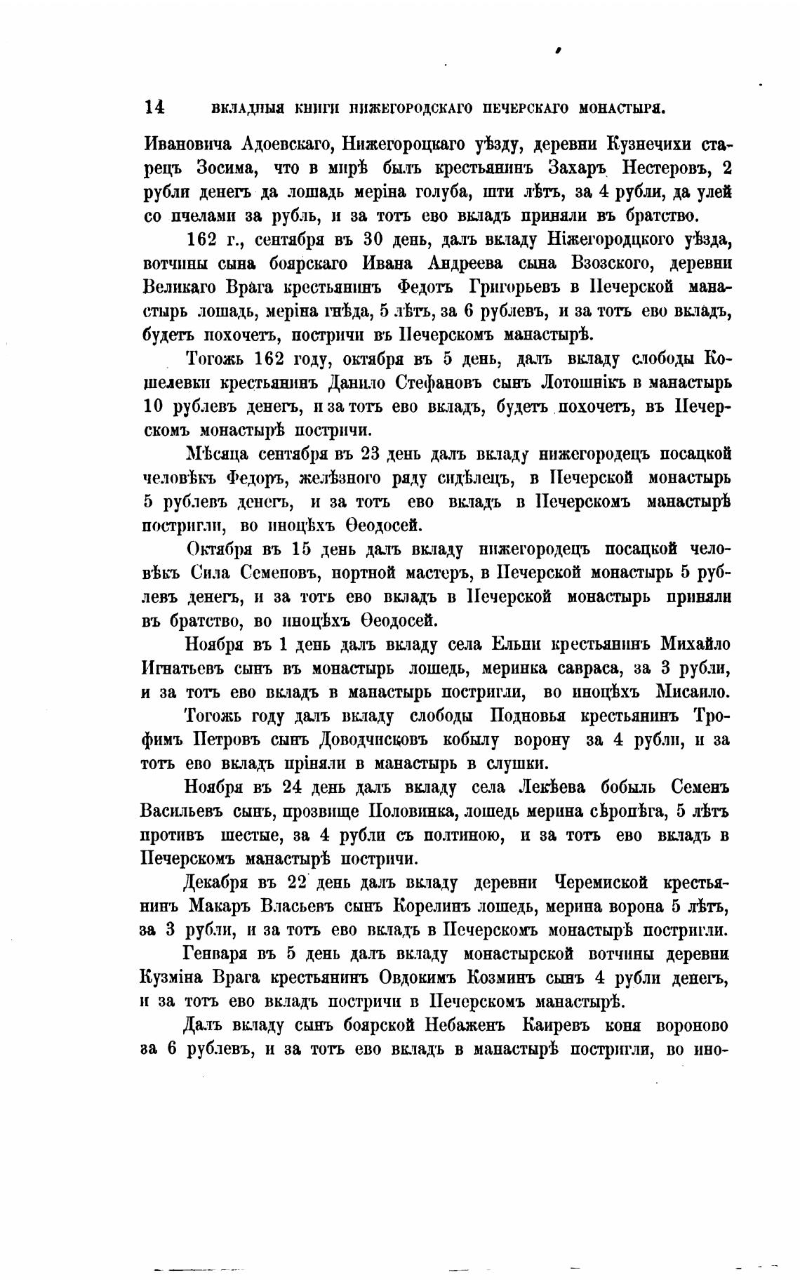левъ денегь, и за тоть ево вкладъ в Печерской монастырь приняли