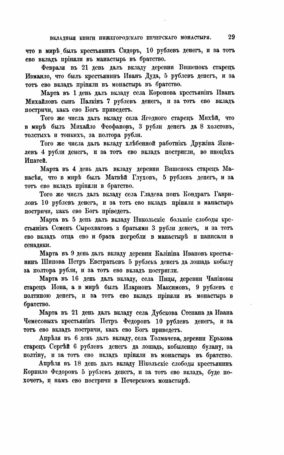 полтиною денегь, и за тоть ево вкладъ HpiHH.M въ монастырь в
