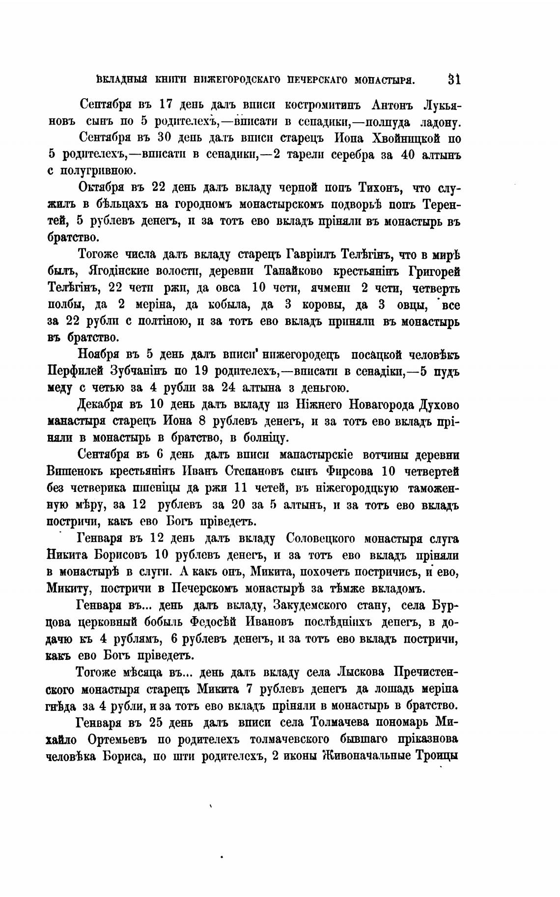 ското монастыря старецъ Микита 7 рублевъ деперь да лошадь Mepina