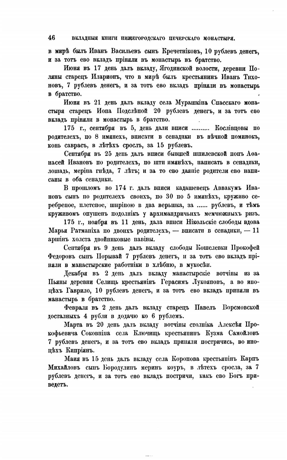 новь, 7 рублевъ денеть, и за тоть ево вкладъ upiHa.1i1I въ монастырь