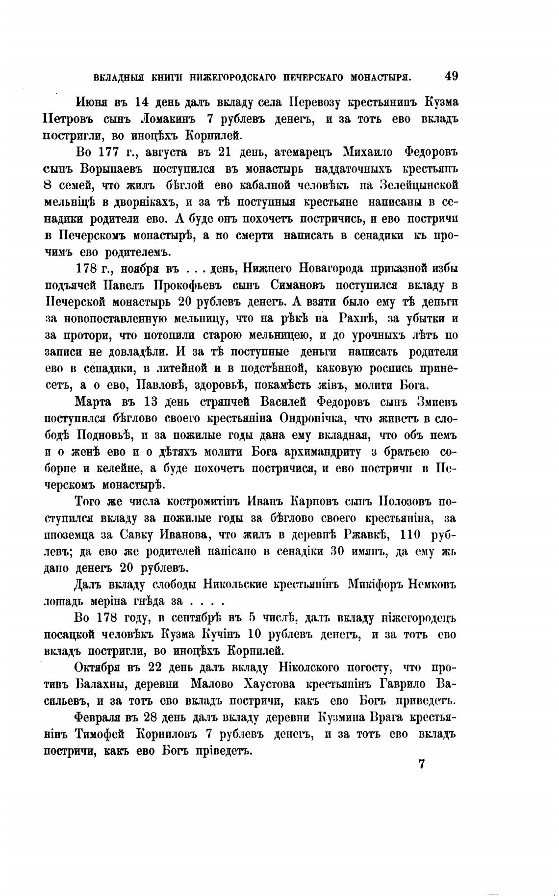 Во 178 году, в сентябр'Ь въ 5 чис„тЬ, даль вкладу тйжегородецъ