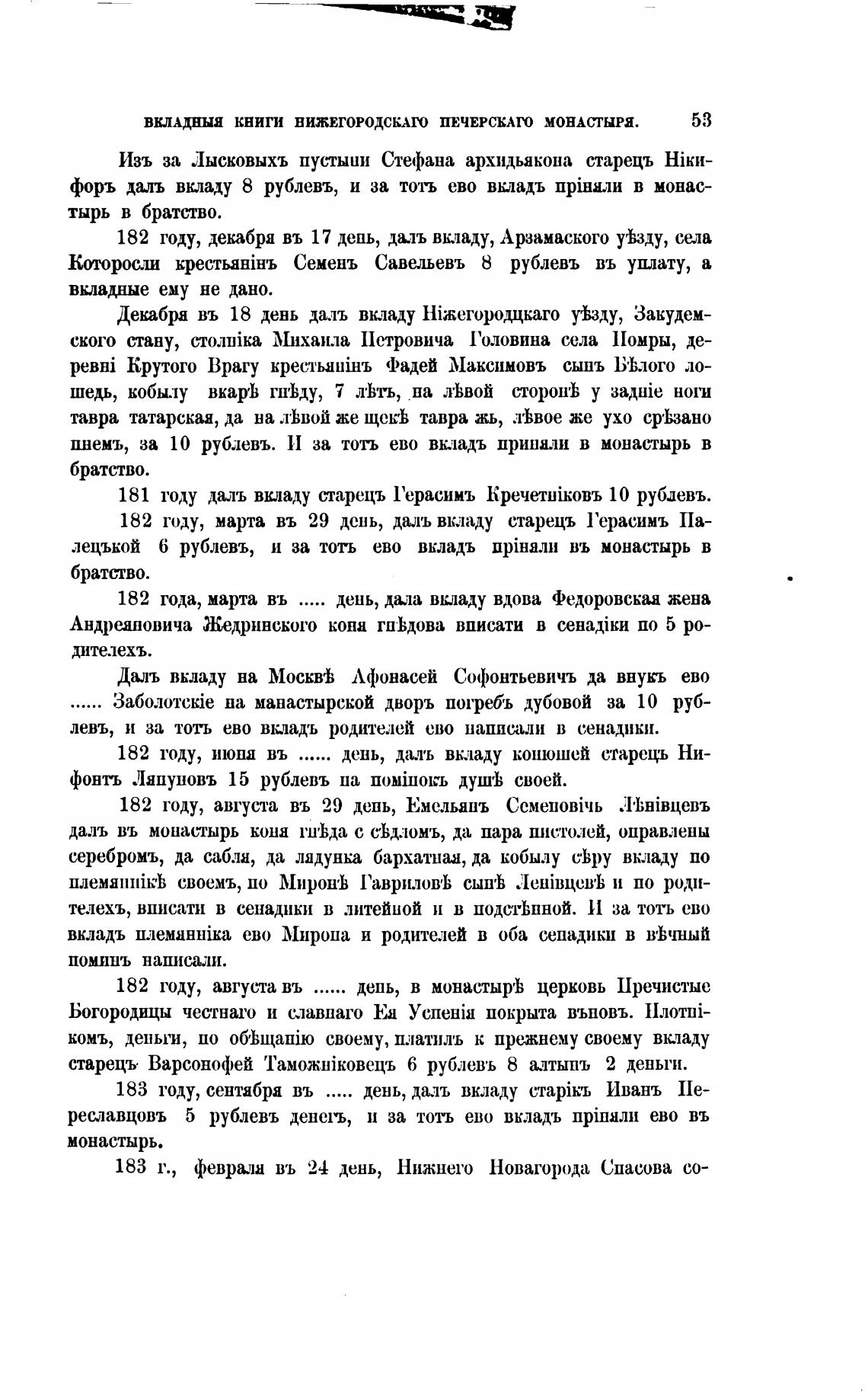 ВКЛАДННЯ КНИГИ НИЖЕГОРОДСКАГО ПЕЧЕРСКАТО МОНАСТЫРЯ.