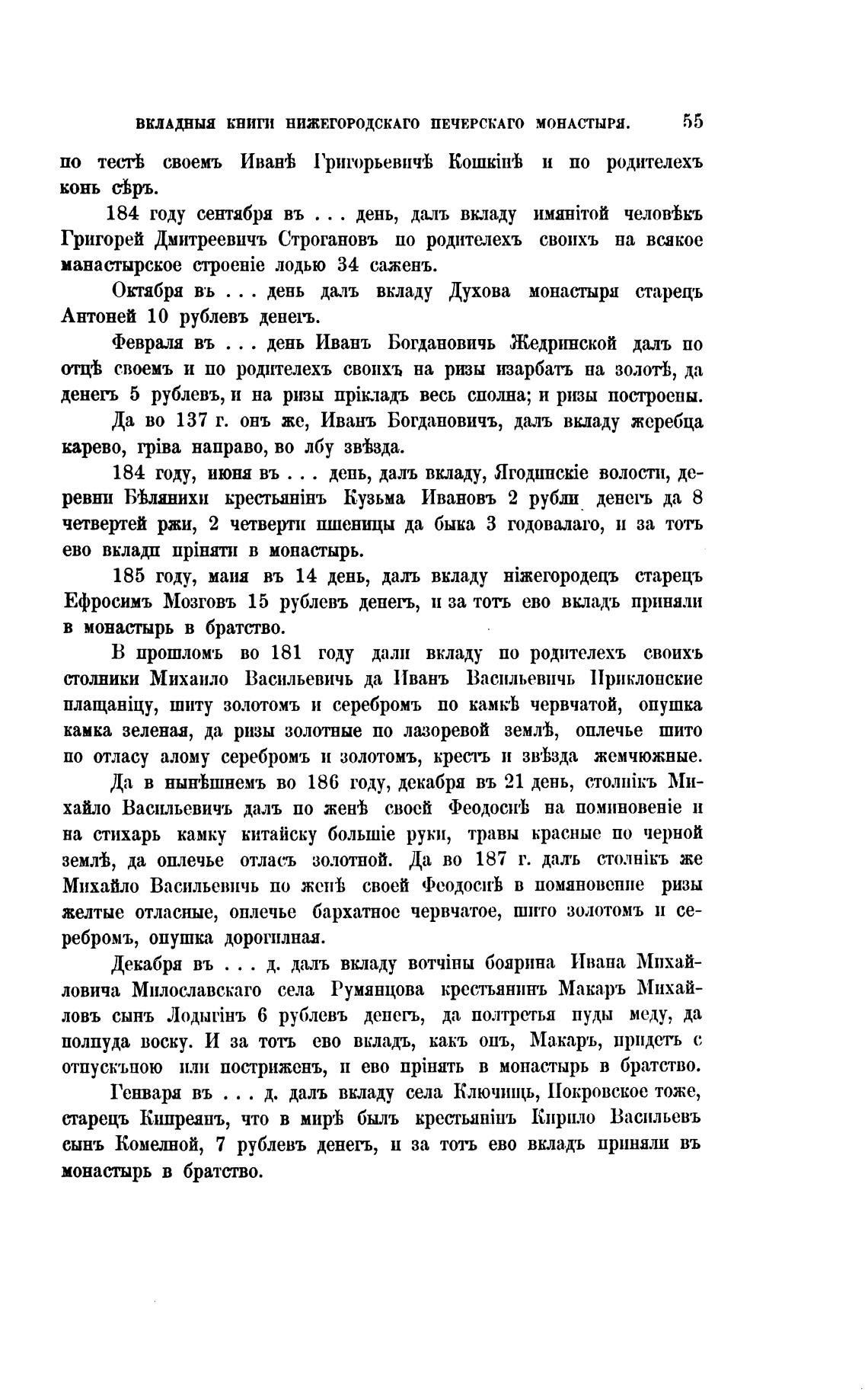 ВКЛАДНЫЯ КНИГИ НИЖЕГОРОДСКАГО ПЕЧЕРСКАГО МОНАСТЫРЯ.