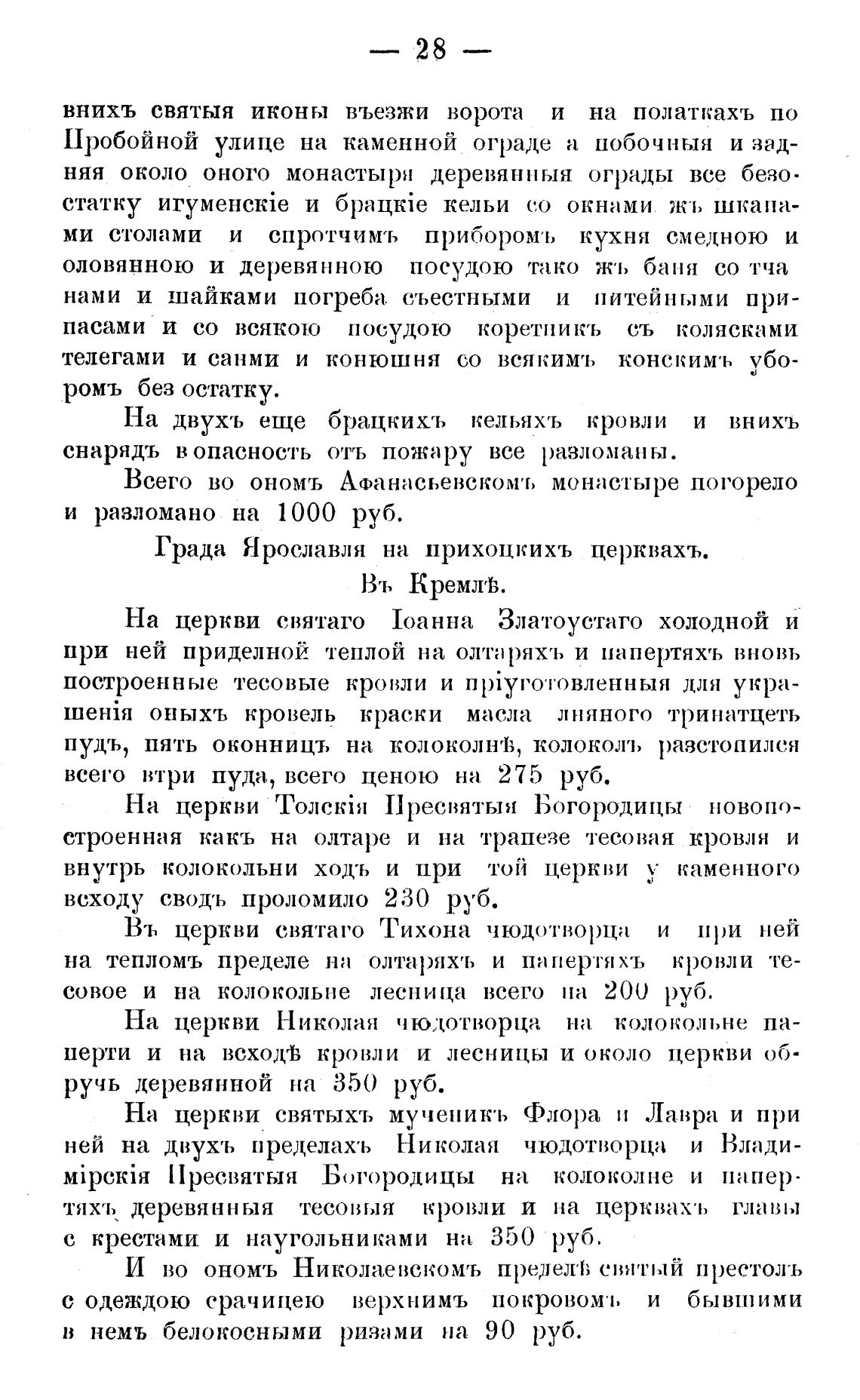 Всего во ономъ Афанасьевском•ь монастыре погорело