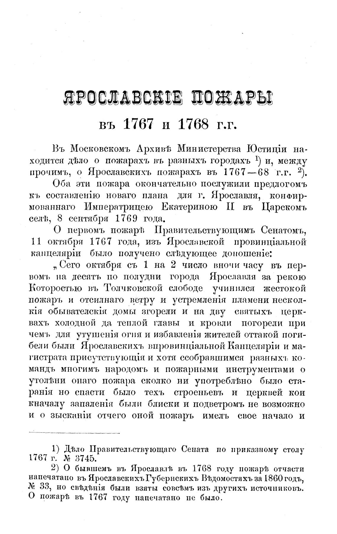 прочимъ, о Ярославскихъ пожарахъ въ 767 —68 г.г.