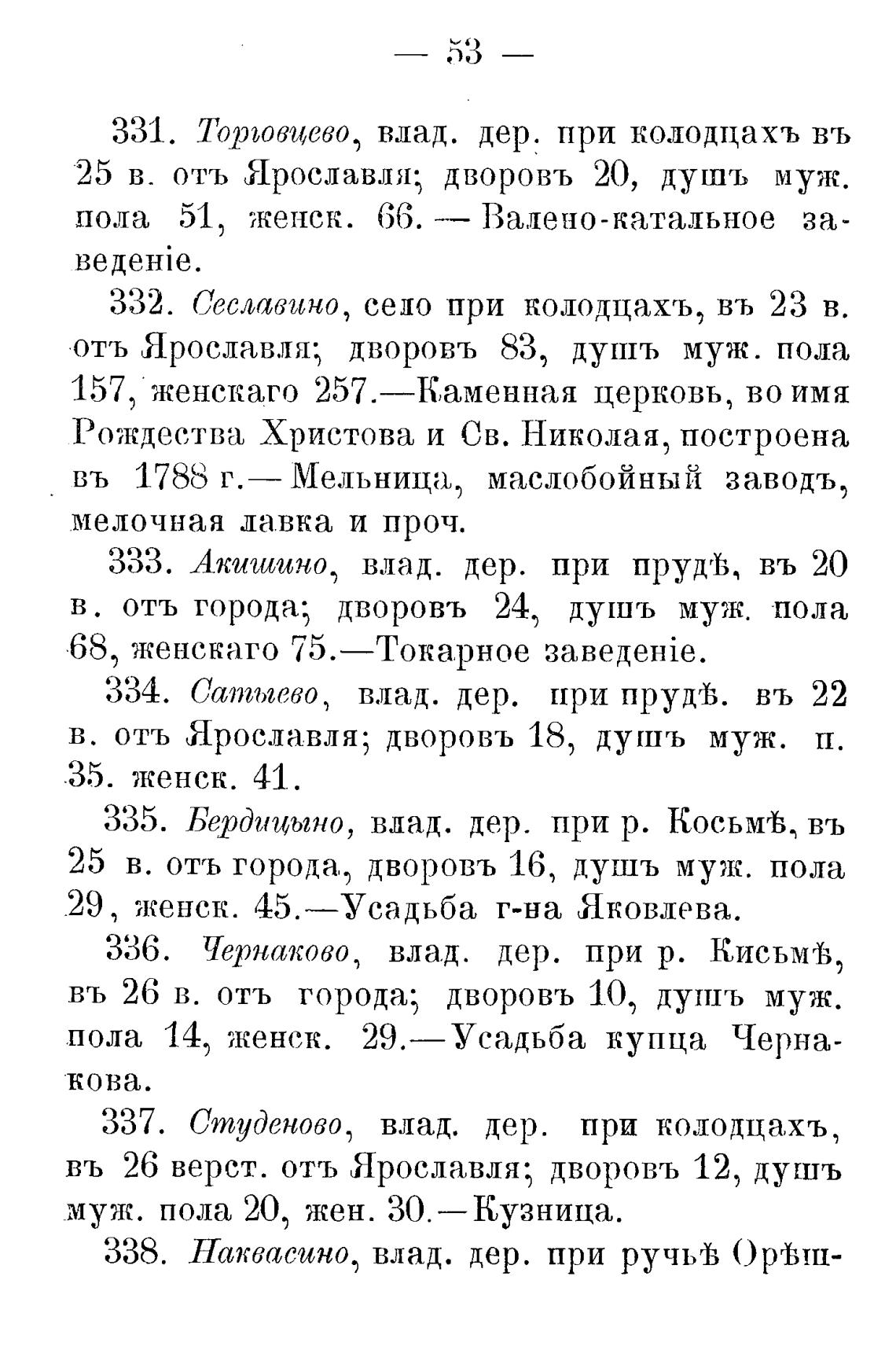в. отъ Ярославля; дворовъ 18, д ушь муж. п.