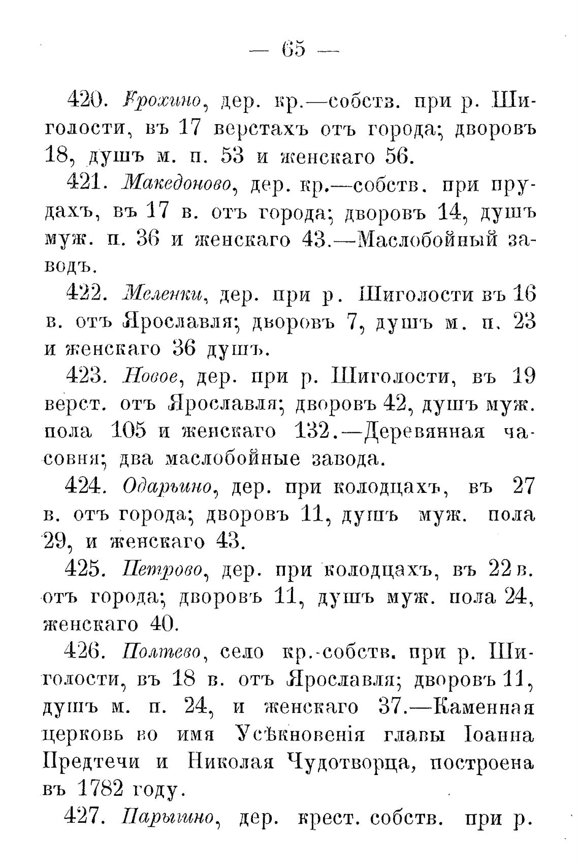 верст. отъ Ярославля; дворовъ 42, душъ муж.