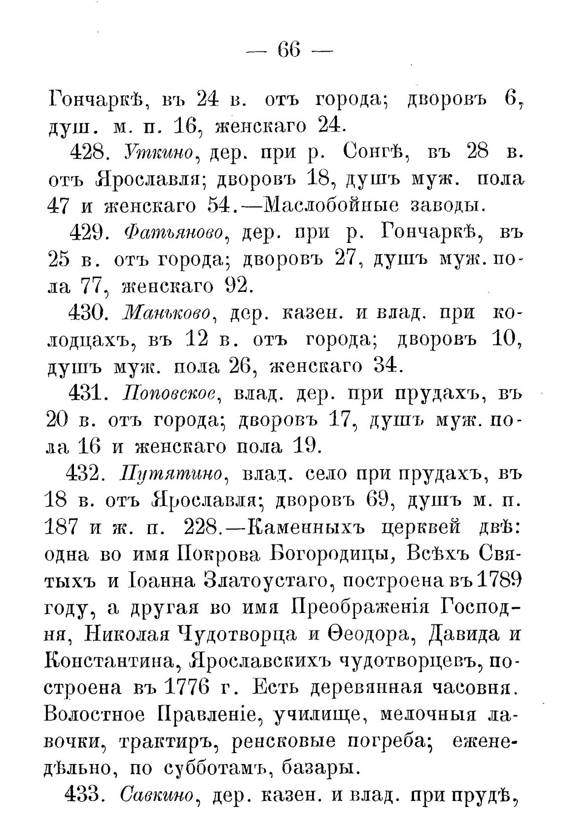 18 в. отъ Ярославля; дворовъ 69, д ушь м. п.