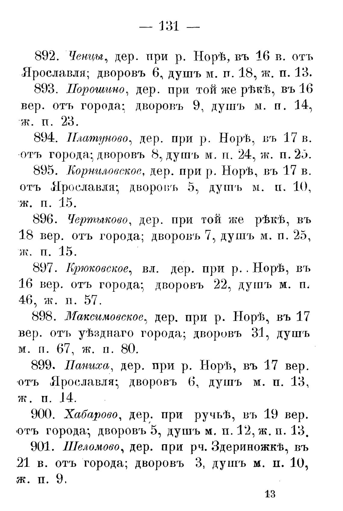 Ярославля; дворовъ 63 душъ м. п. 18, ж. п. 13.