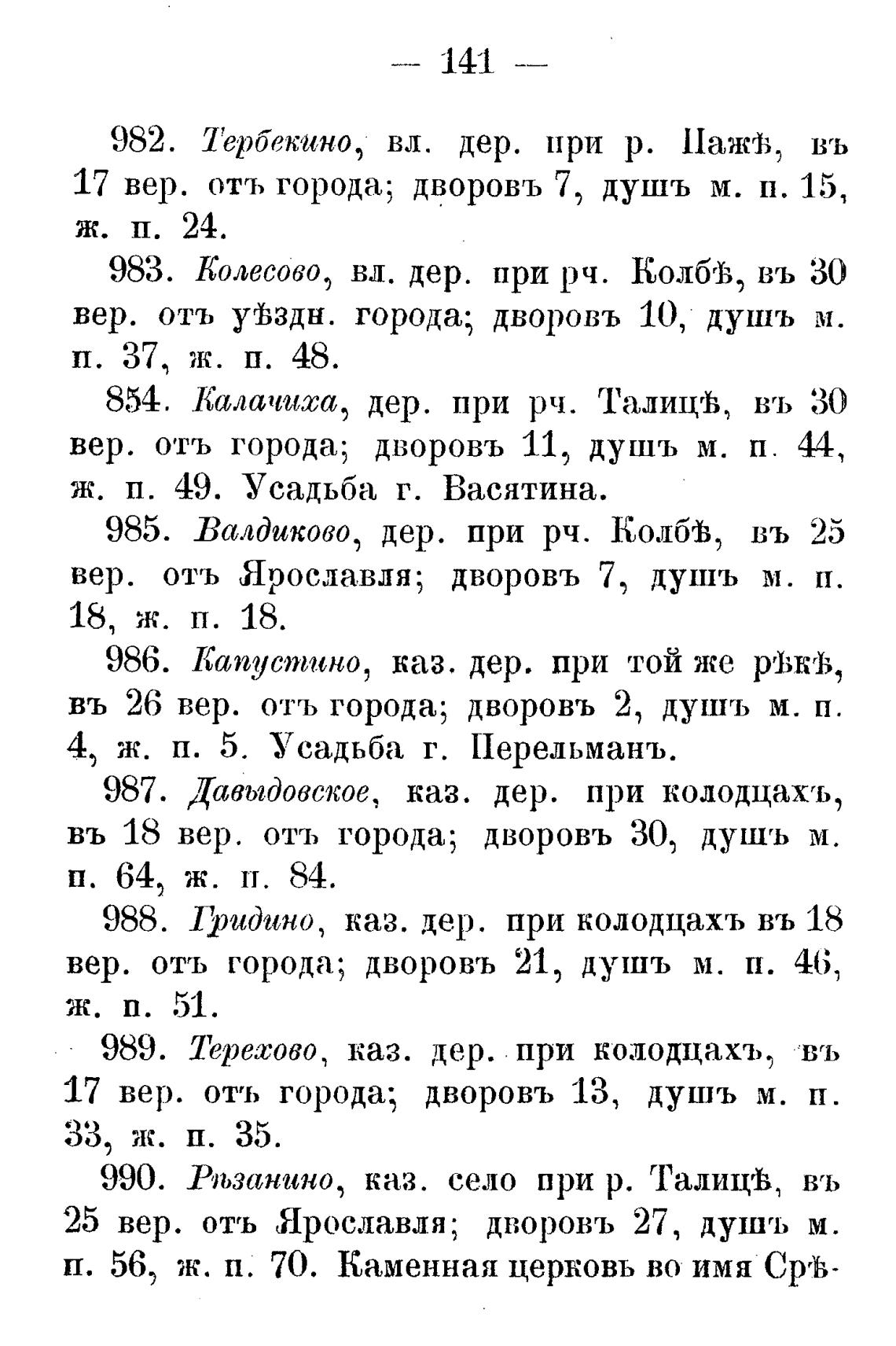 25 вер. отъ Ярославля; дворовъ 27, душъ м.