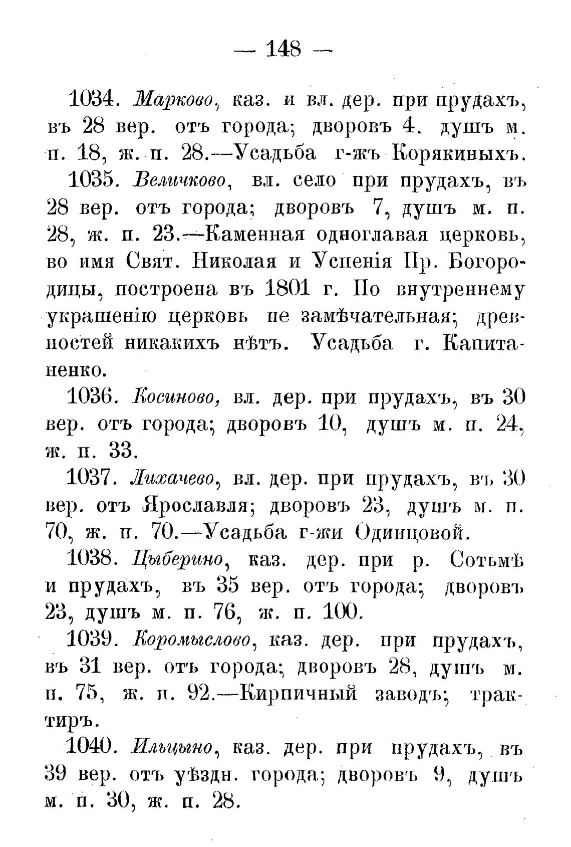 1039. Коромыслово, каз. дер. при прудахъ,