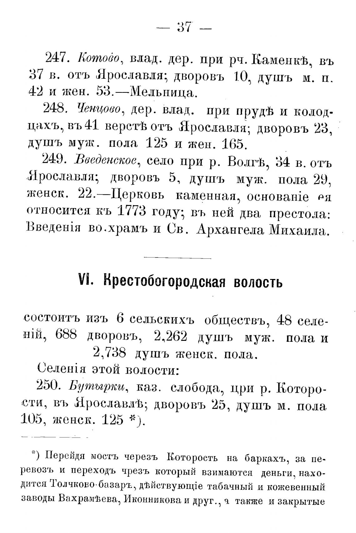 37 в. отъ Ярославля; дворовъ 1.0, душъ м. п.