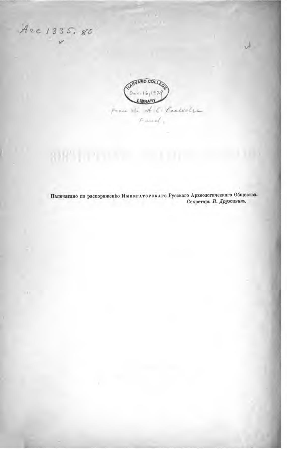 Напечатано по распоряжен{ю Импкгдторск Русскаго Археодогическаго Общества.