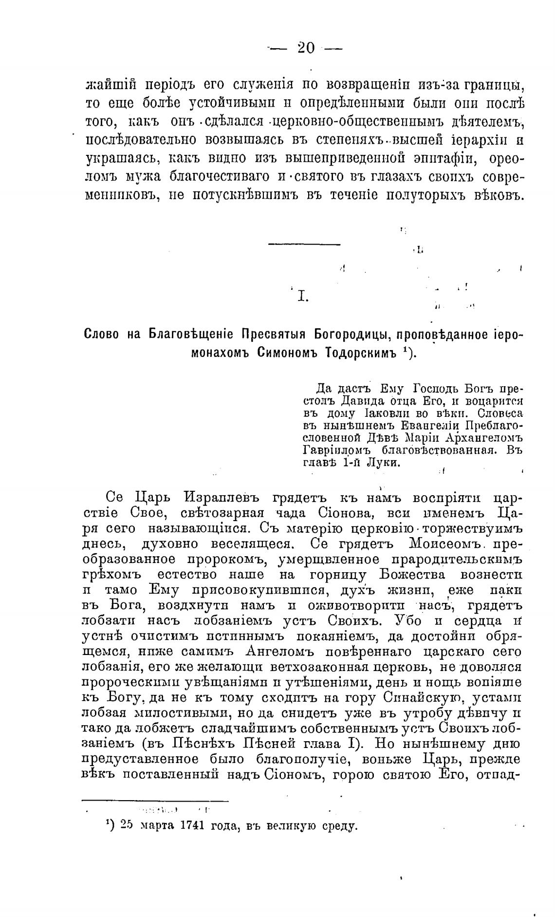 1) 25 марта 1741 года, въ великую среду.