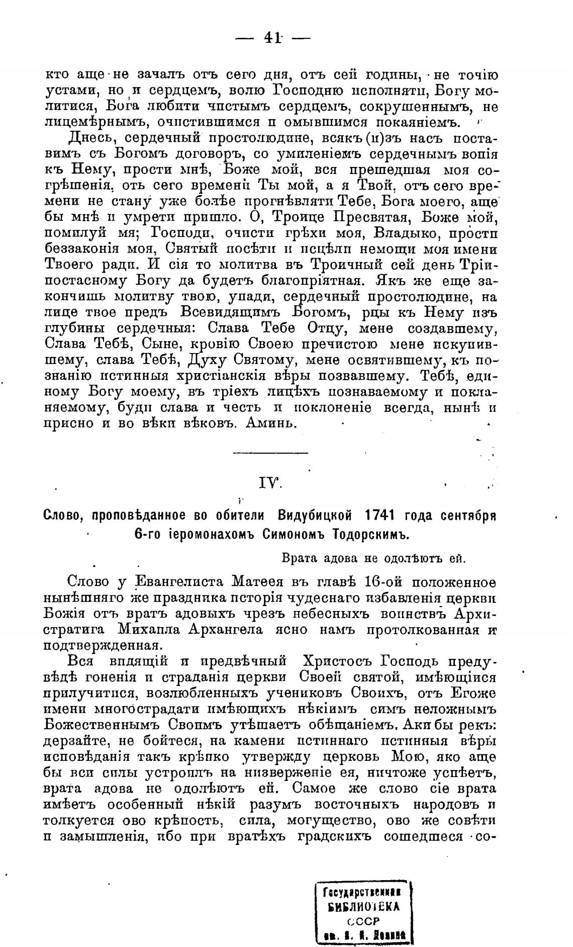 Слово, пропов%данное во обители Видубицкой 1741 года сентября