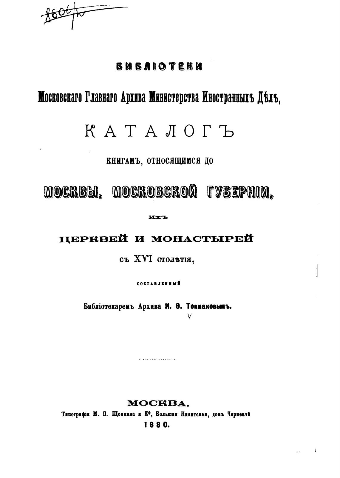 Московскаго главнаго Арта Министерства Иностраншъ диъ,