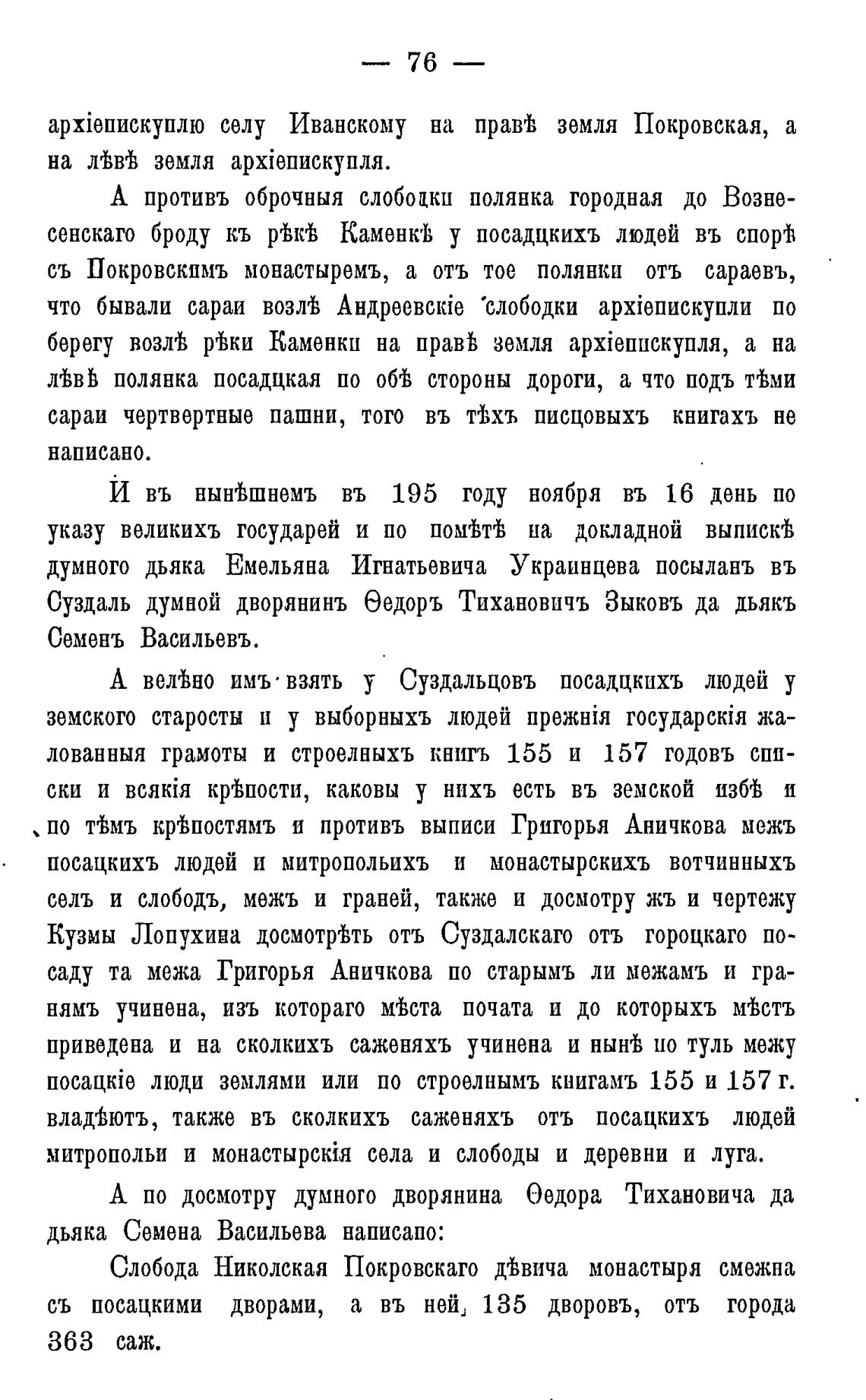 Суздаль думной дворянинъ Эедоръ Тихановичъ Зыковъ да дьякъ