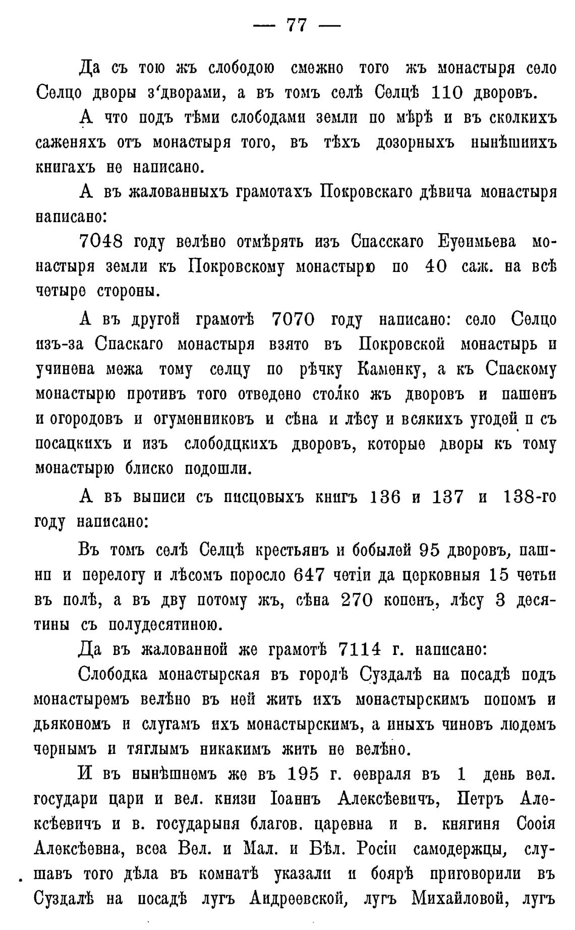 монастырю противь того отведено столко жъ дворовъ и пашенъ