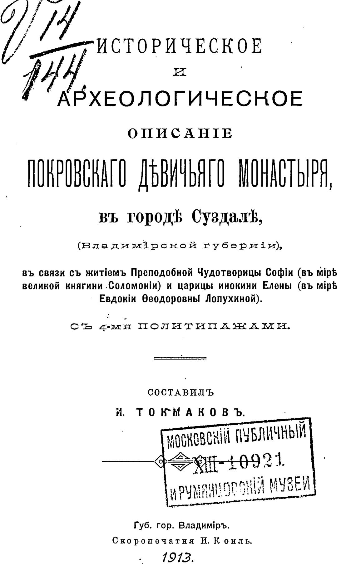 великой княгини и царицы инокини Елены (въ Mipb