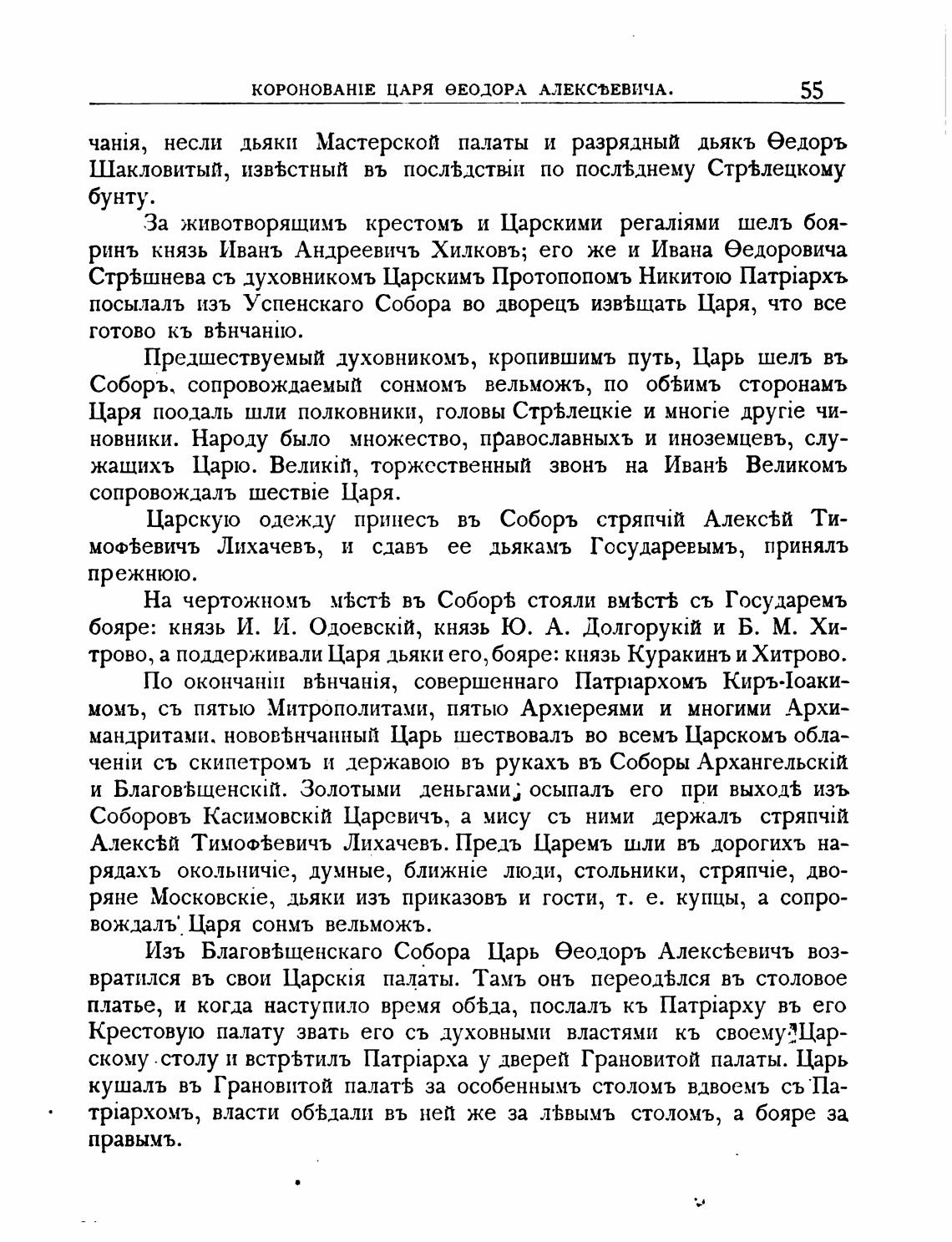 трово, а поддерживали Царя дьяки его, бояре: князь Куракинъ и Хитрово.