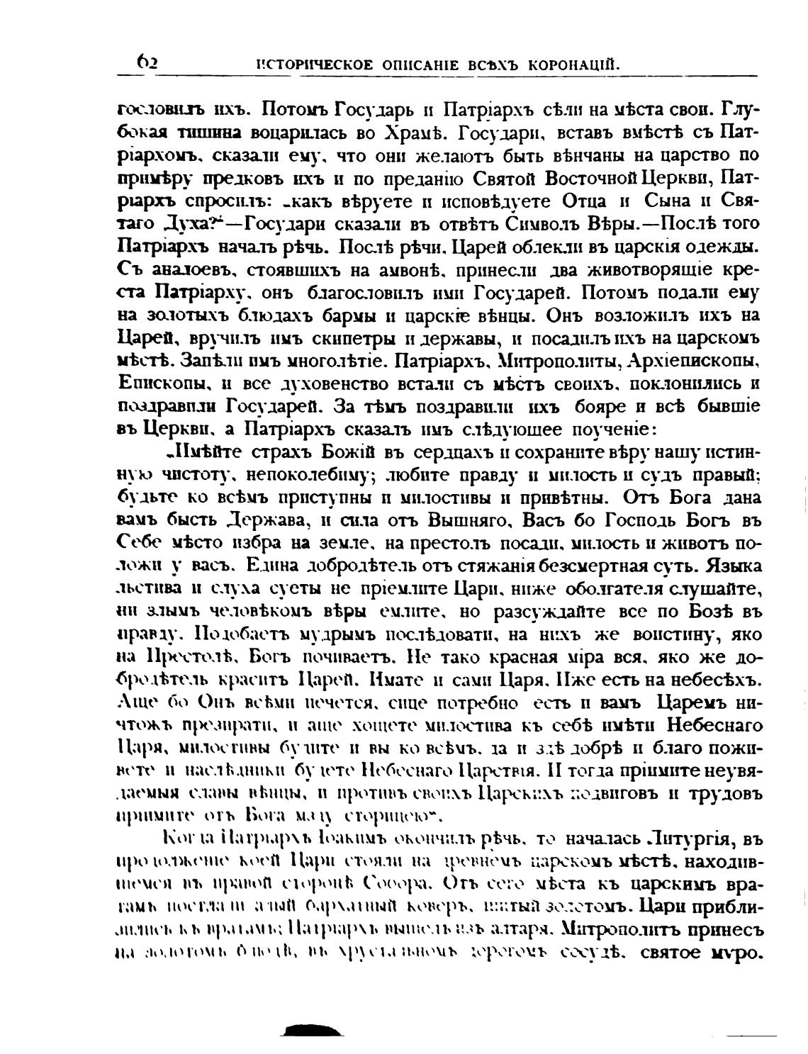 ста Патрар.ху. онъ благословилъ ими Государей. Потомъ подали ему