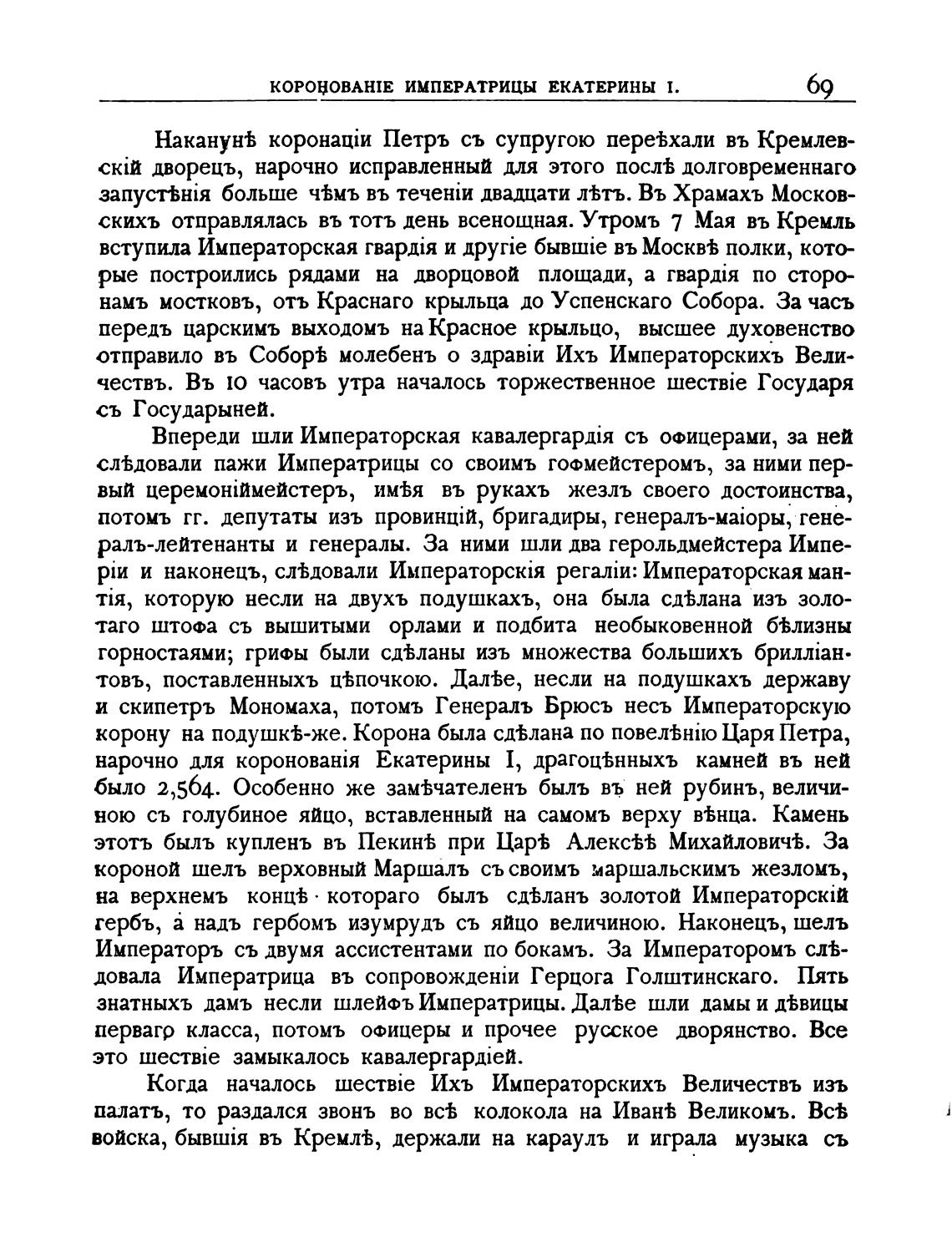 и скипетръ Мономаха, потомъ Генераль Брюсъ несъ Императорскую