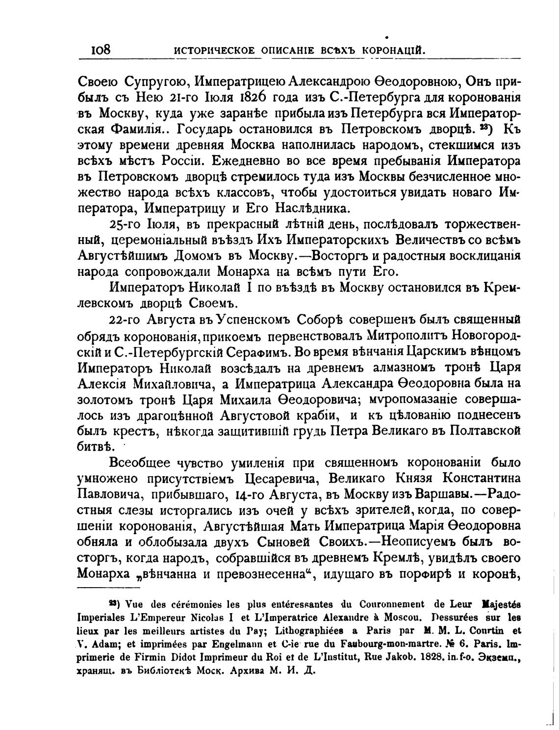 быль съ Нею 21-го 1юля 1826 года изъ С.-Петербурга для короновани