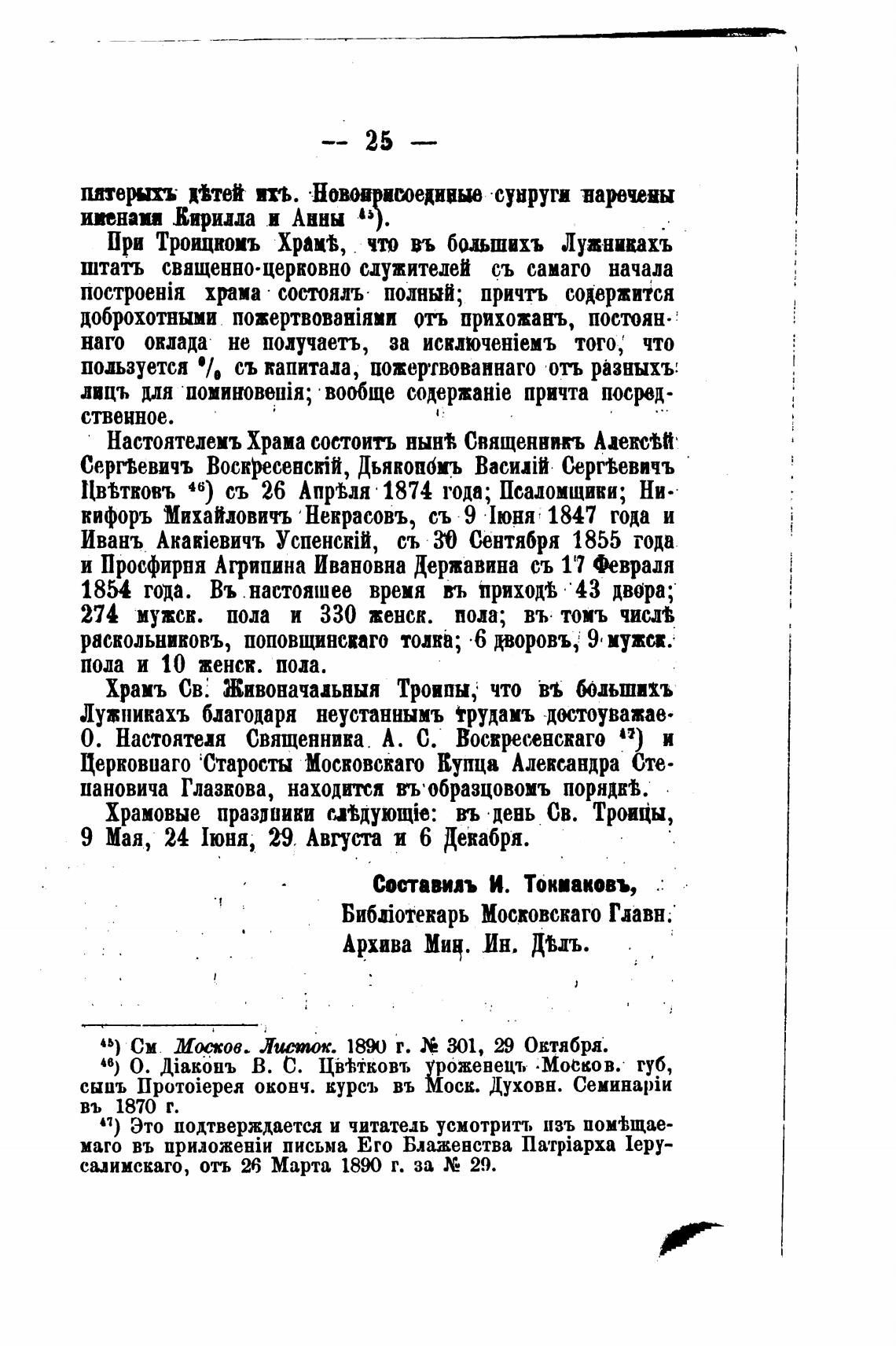 Составил И. Ток•аковъ,