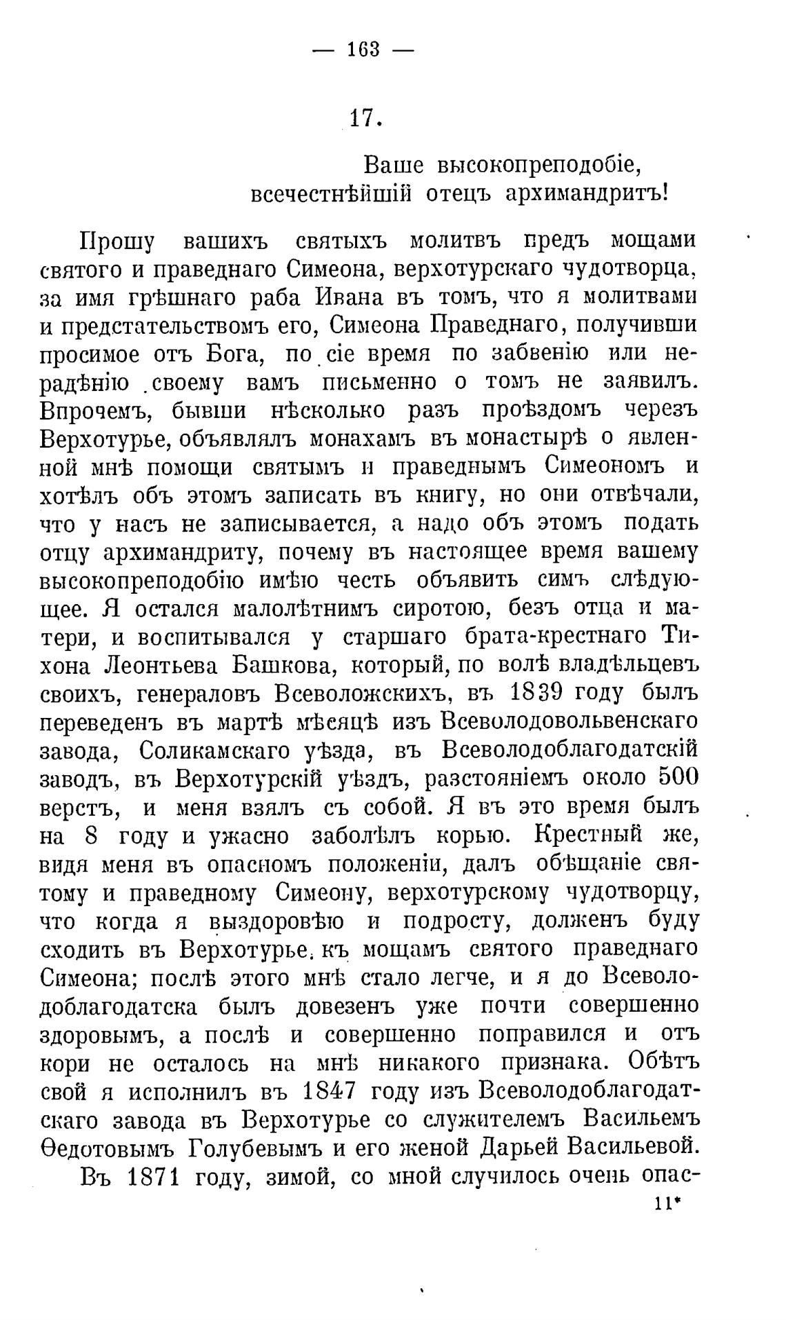 сходить въ Верхотурье. кь мощамъ святого праведнаго