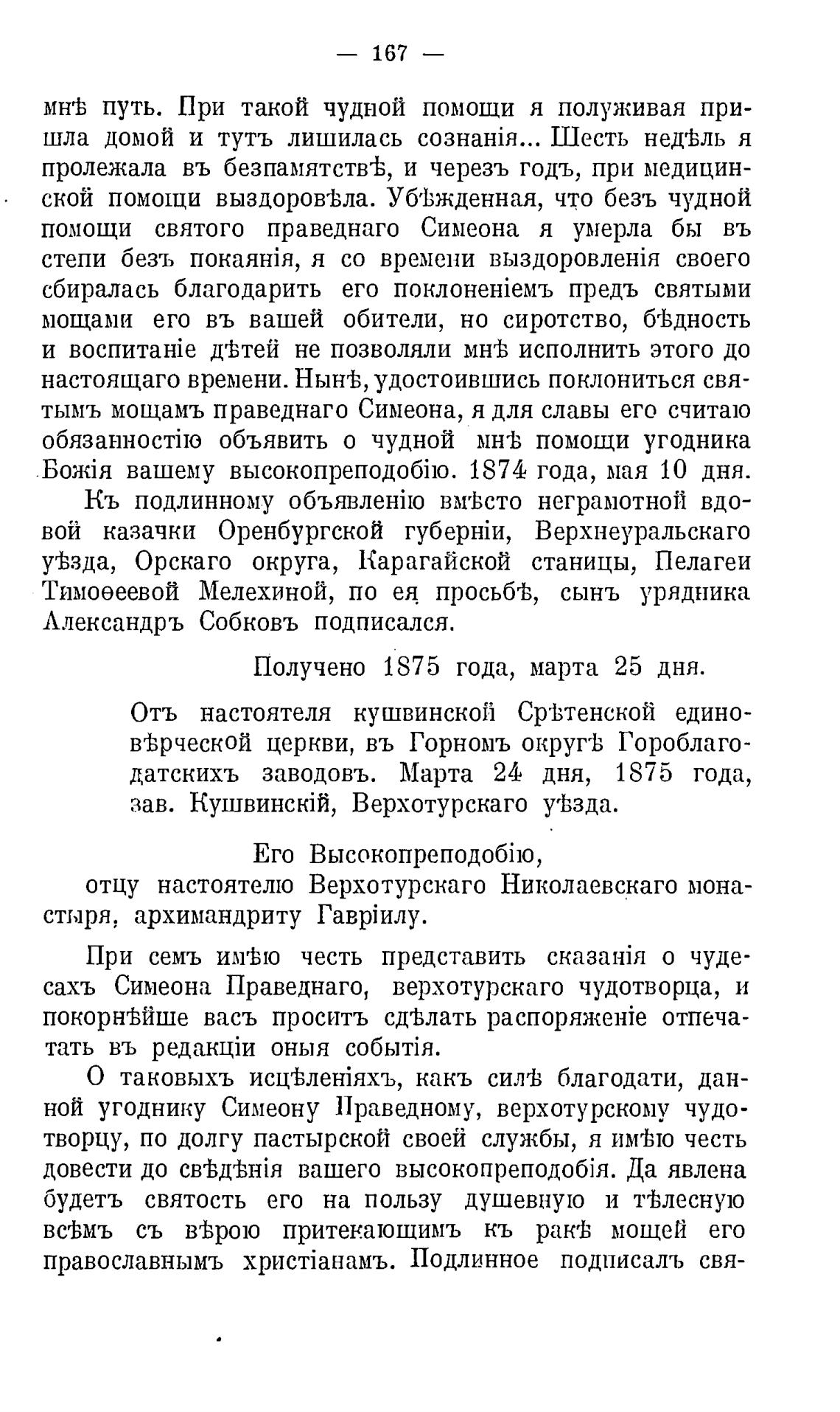 Отъ настоятеля кушвинской СреЬтенской едино-